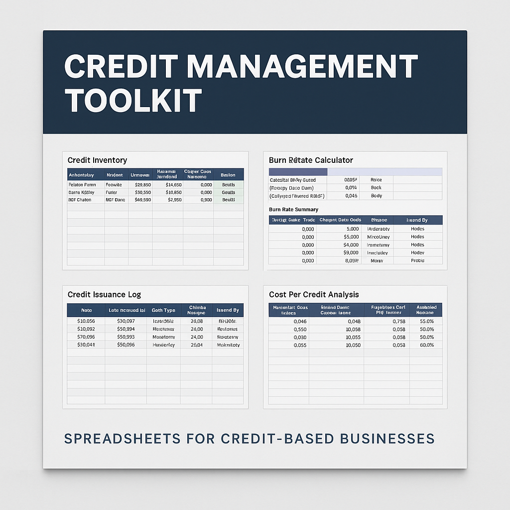 The Credit Management Toolkit is a ready-to-use spreadsheet system designed to help operators track credits clearly, understand real costs, and scale calmly — without guessing, panic, or over-issuing.