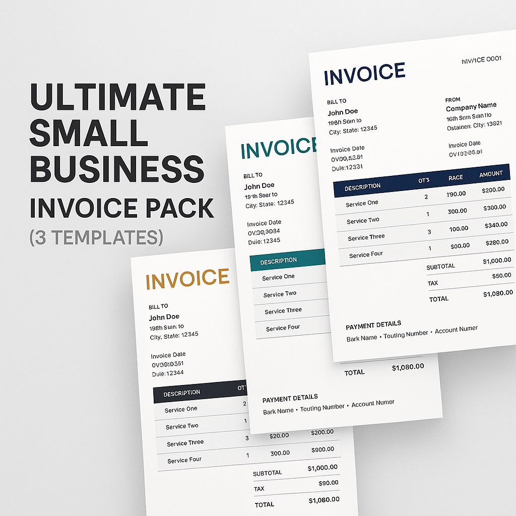 Give your business a clean, professional look with this set of 3 premium invoice templates, each designed for clarity, accuracy, and ease of use.